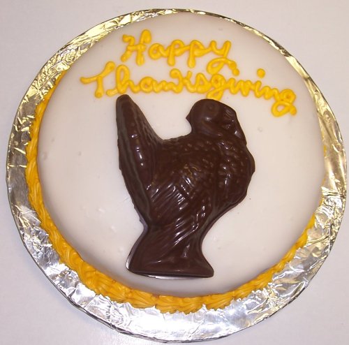 Chocolate Decorated Cake Single Layer 8" Round Topped with Chocolate Turkey Golden Yellow Trim Reviews